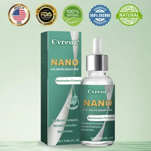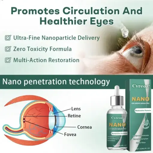 Cvreoz® Nano Eye Drops Serum Pro is the first FDA-registered ultra-fine nanoparticle formula with a clinically proven 96.8% success rate for treating multiple eye conditions at home. Thanks to breakthrough Nano-Penetration Technology, it penetrates up to 300% deeper into eye tissue compared to conventional drops, showing visible results within 48-72 hours.