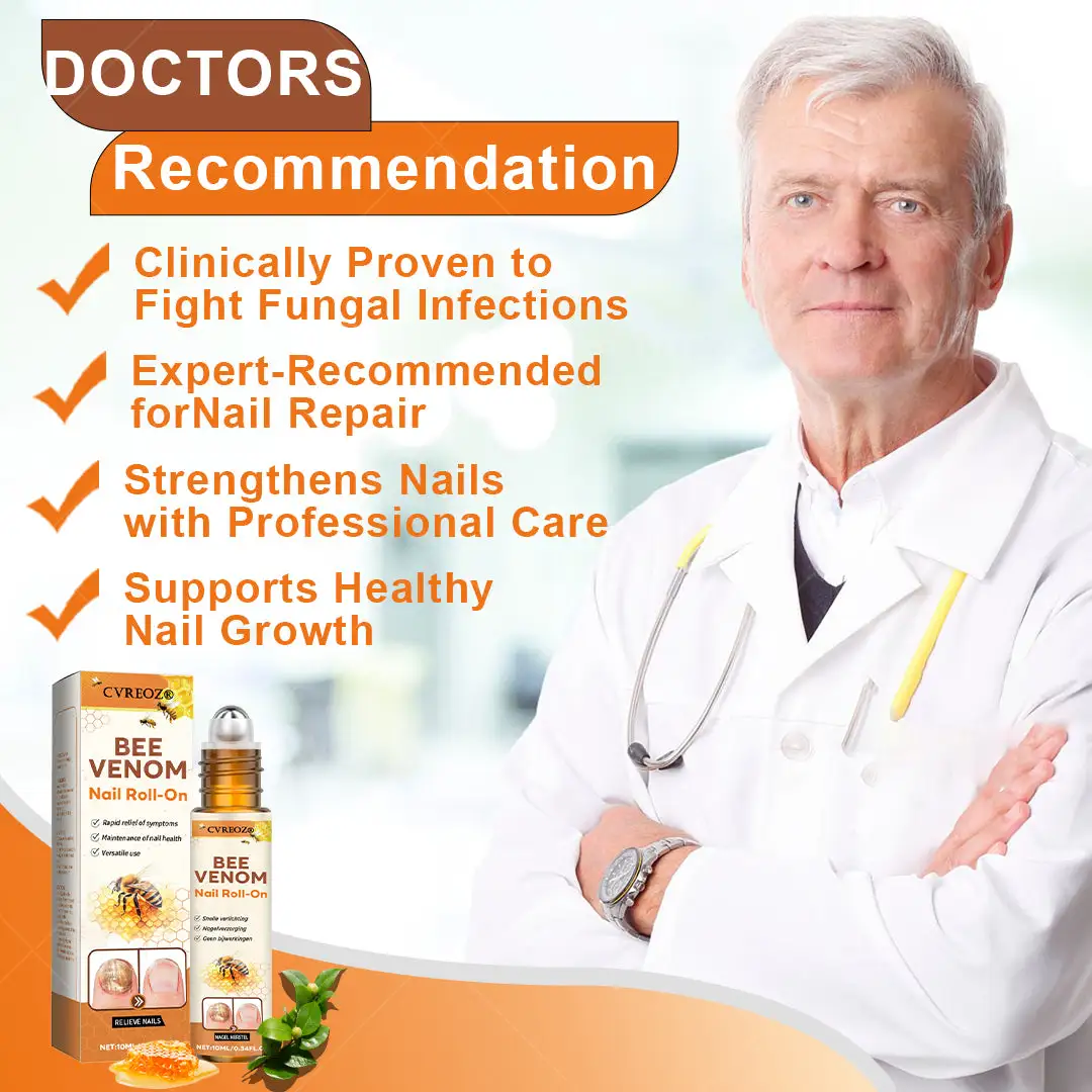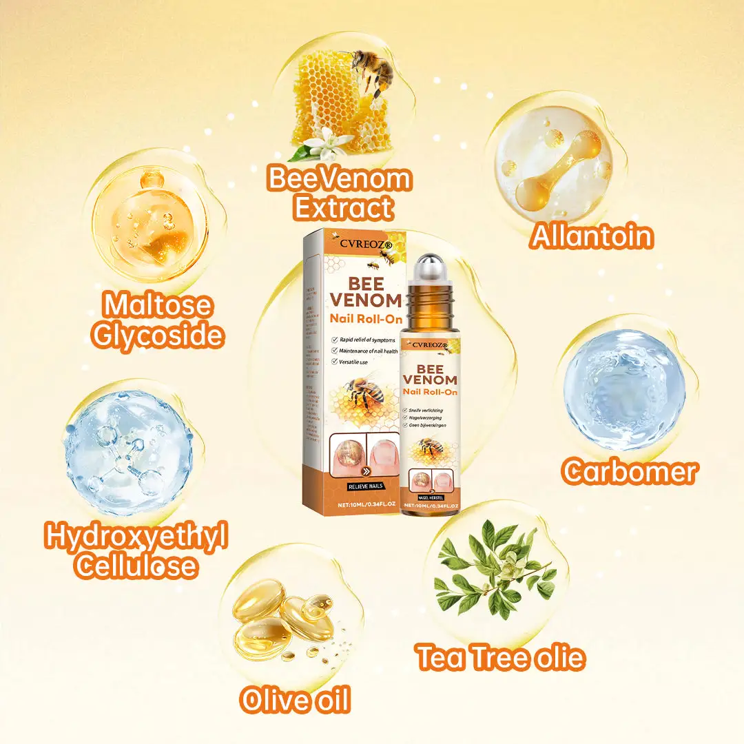 Cvreoz® Bee Venom Nail Roll-On delivers a powerful antifungal action that penetrates deep into the nail bed to eradicate stubborn fungal infections, while its unique bee venom complex and medical-grade antifungal agents work synergistically to not only eliminate existing pathogens but also strengthen nail structure and prevent future reinfections, with clinically proven results showing visible nail restoration and long-lasting protection for healthier, more resilient nails.