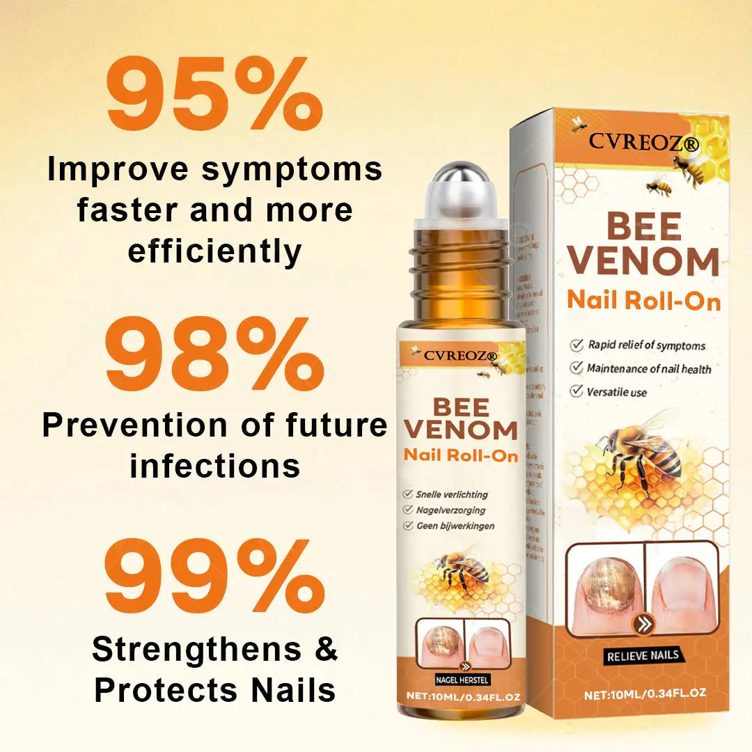 Cvreoz® Bee Venom Nail Roll-On uses a unique roll-on formula to effectively nourish and revitalize nails. This innovative product visibly improves the appearance and overall health of nails. Experience the powerful benefits of bee venom and revitalize your nails.