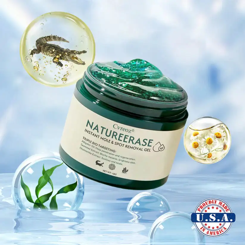 The Cvreoz® NatureErase Instant Mole & Spot Removal Gel is designed to remove skin imperfections like moles, skin tags, dark spots, and blemishes quickly and effectively. It combines the power of three key natural ingredients—Alligator Oil, Chamomile Extract, and Seaweed Extract—to target and eliminate skin imperfections painlessly, leaving your skin smooth, radiant, and flawless.