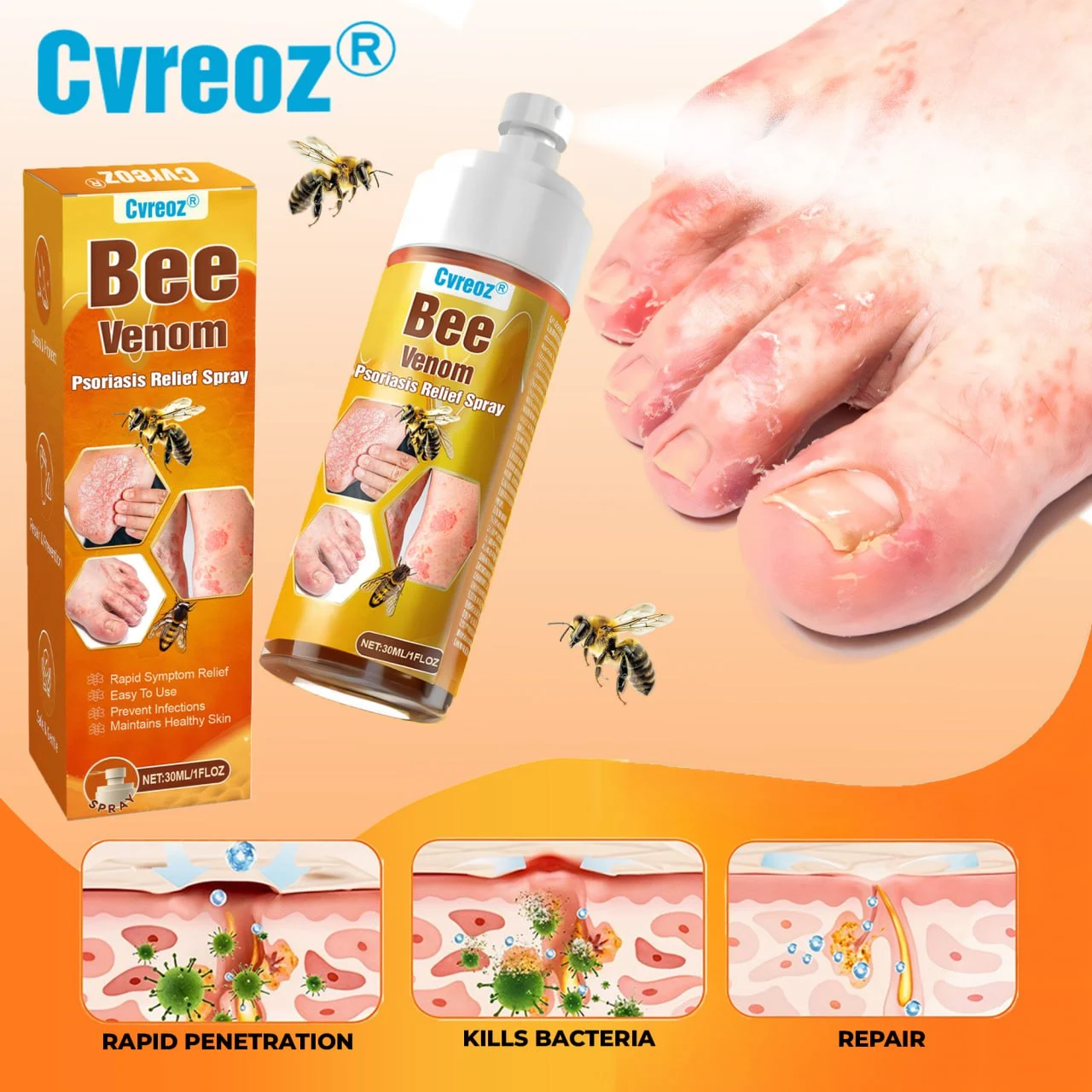 Discover Cvreoz® Bee Venom Psoriasis Relief Spray – Soothe, Heal, and Restore Healthy Skin