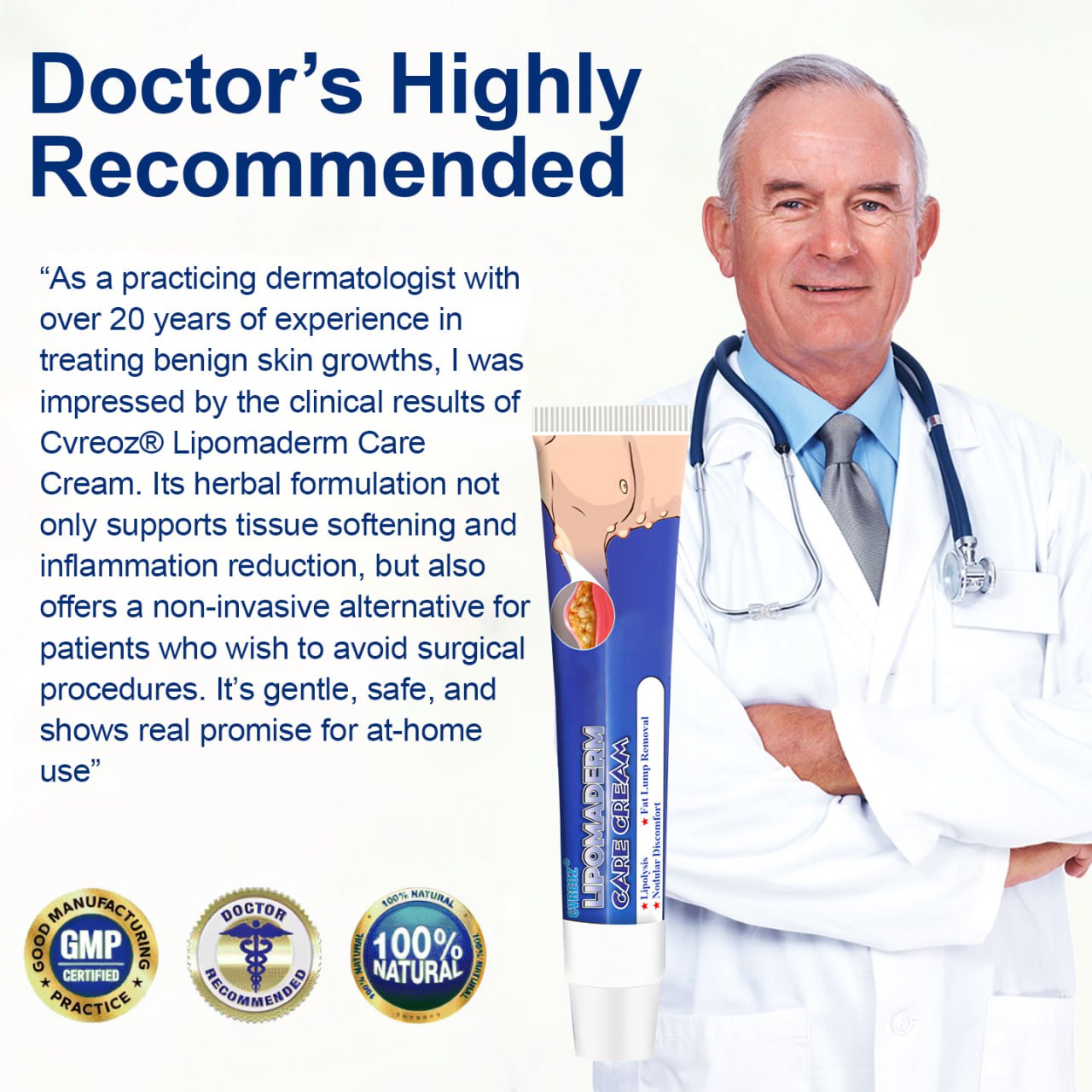Skip the scalpels and lengthy healing time —Cvreoz® LipomaDerm Care Cream offers a safe, natural solution to shrink lipomas and fatty lumps from the comfort of your home.